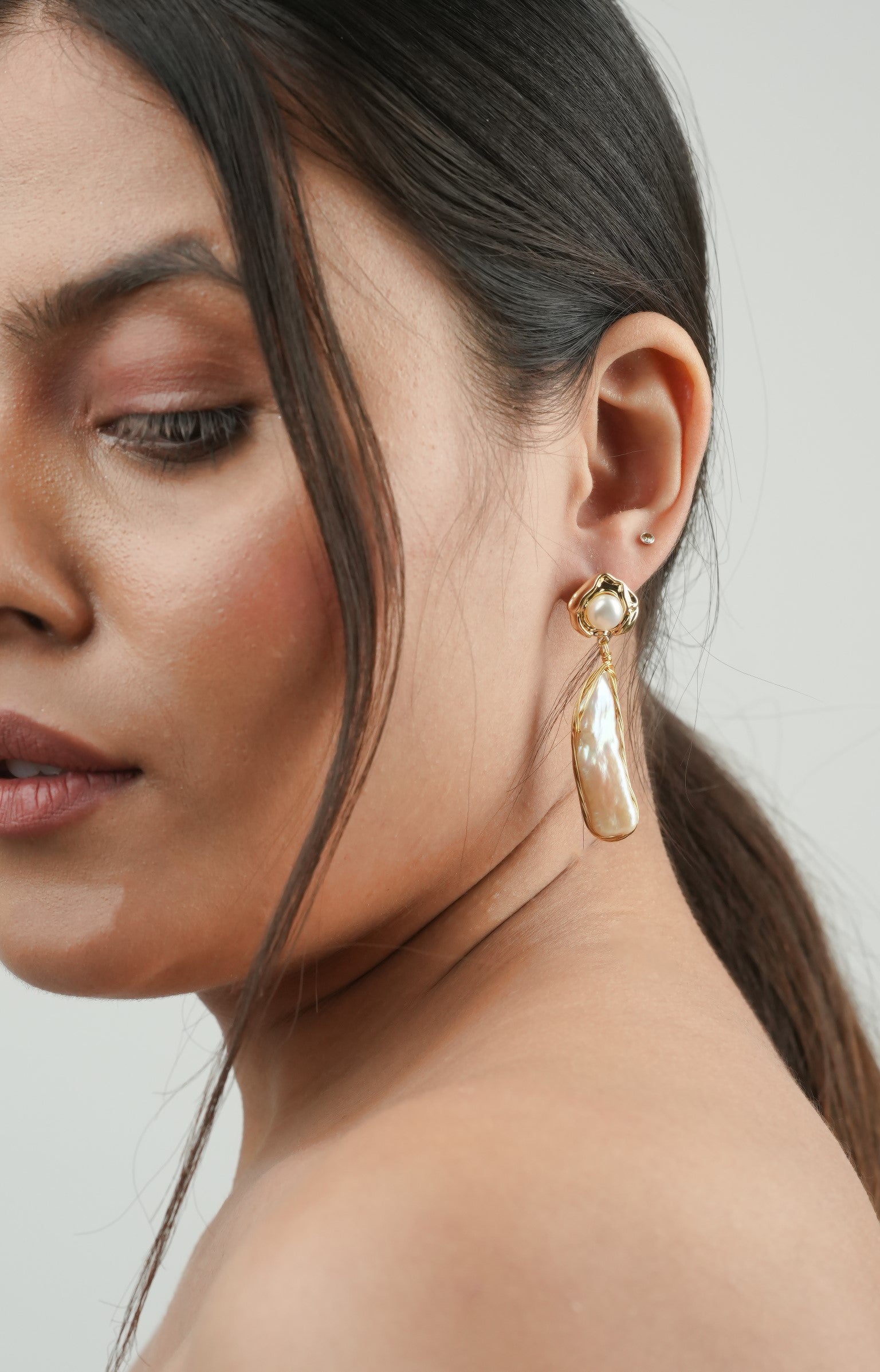 The Arci Drop Earrings feature a sleek, elongated design that dances with every turn, offering a fluid, graceful silhouette. Perfect for adding a sophisticated touch of elegance to both casual and formal looks.