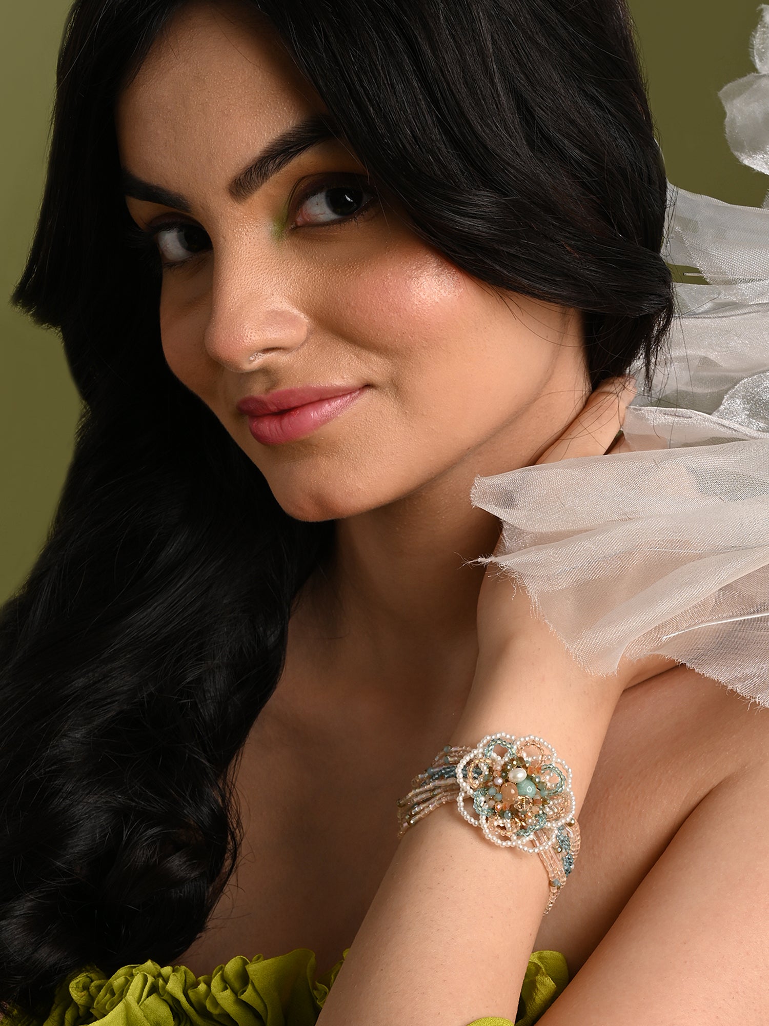 Round Floral Pearl Colourful Crystal And Stone Bracelet