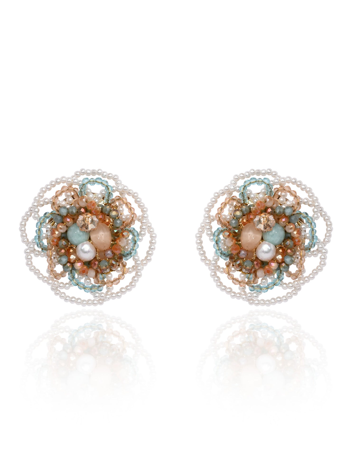 Floral Haldi Mehendi Colourful Stone Crystal Earrings