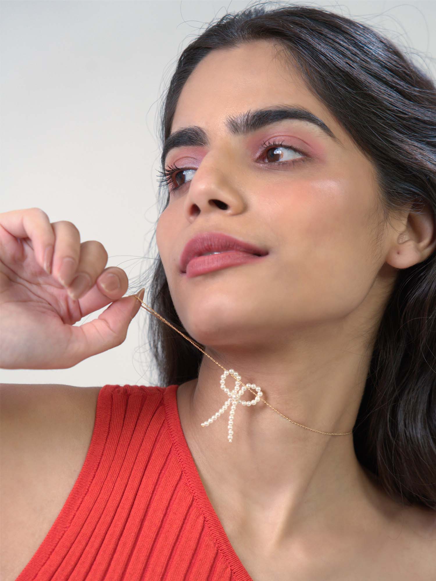 Introducing the Bowtiful Necklace, a charming blend of elegance and whimsy. This delightful necklace features a dainty bow design crafted from polished metal, adding a touch of feminine flair to any outfit. Perfect for everyday wear or special occasions, it is lightweight and comfortable. Elevate your style effortlessly with the Bowtiful Necklace, a timeless addition to your jewelry collection.