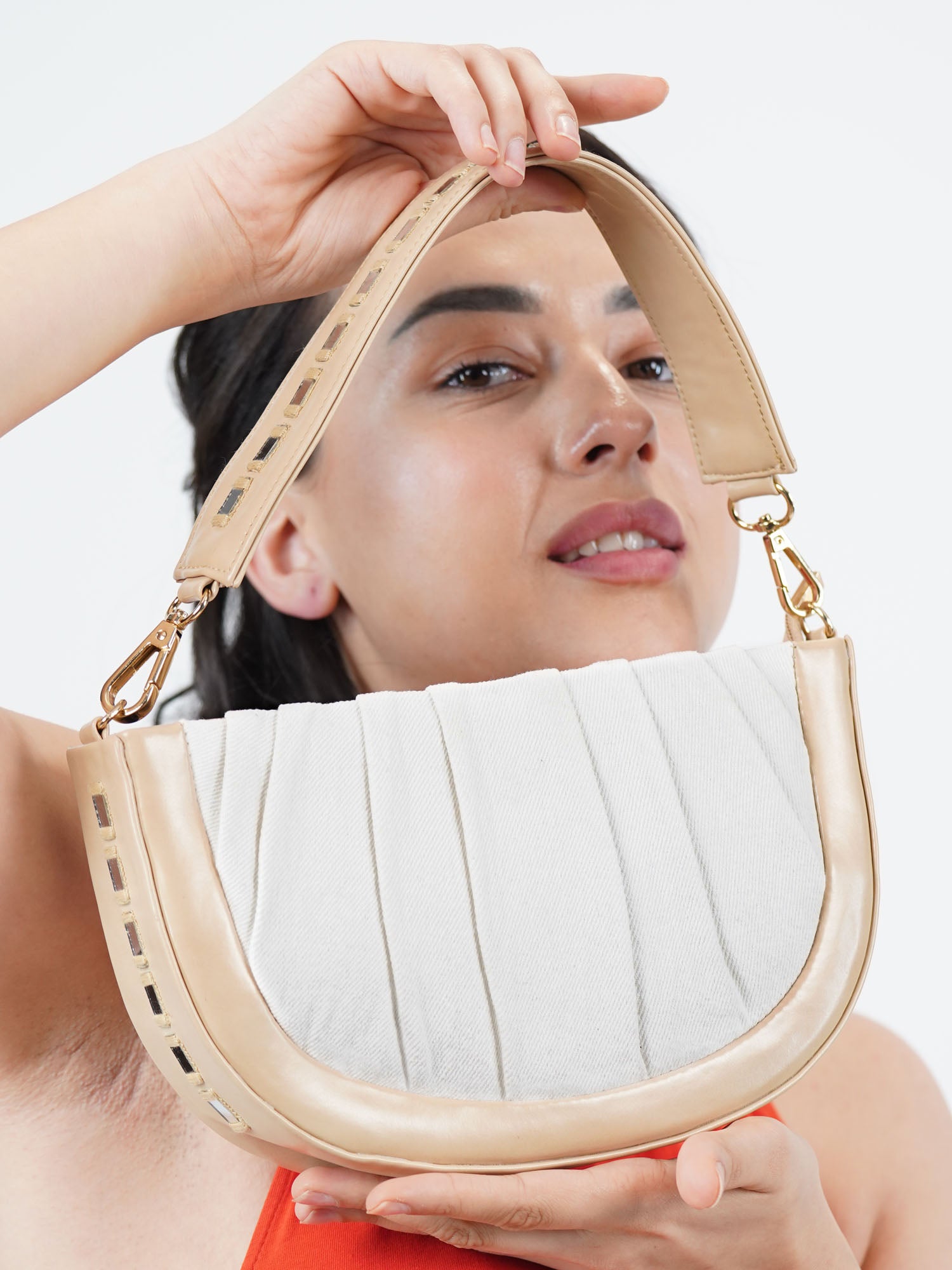 Presenting our Denim Swagger Shoulder Bag in pristine white, a timeless blend of sophistication and versatility. Made from high-quality denim, this shoulder bag embodies effortless chic. Its generous compartment offers ample space for your belongings, while the adjustable strap ensures a comfortable fit. Accented with polished metal details, it adds a touch of refinement to any outfit. Elevate your style with the understated elegance of our Denim Swagger Shoulder Bag in White.