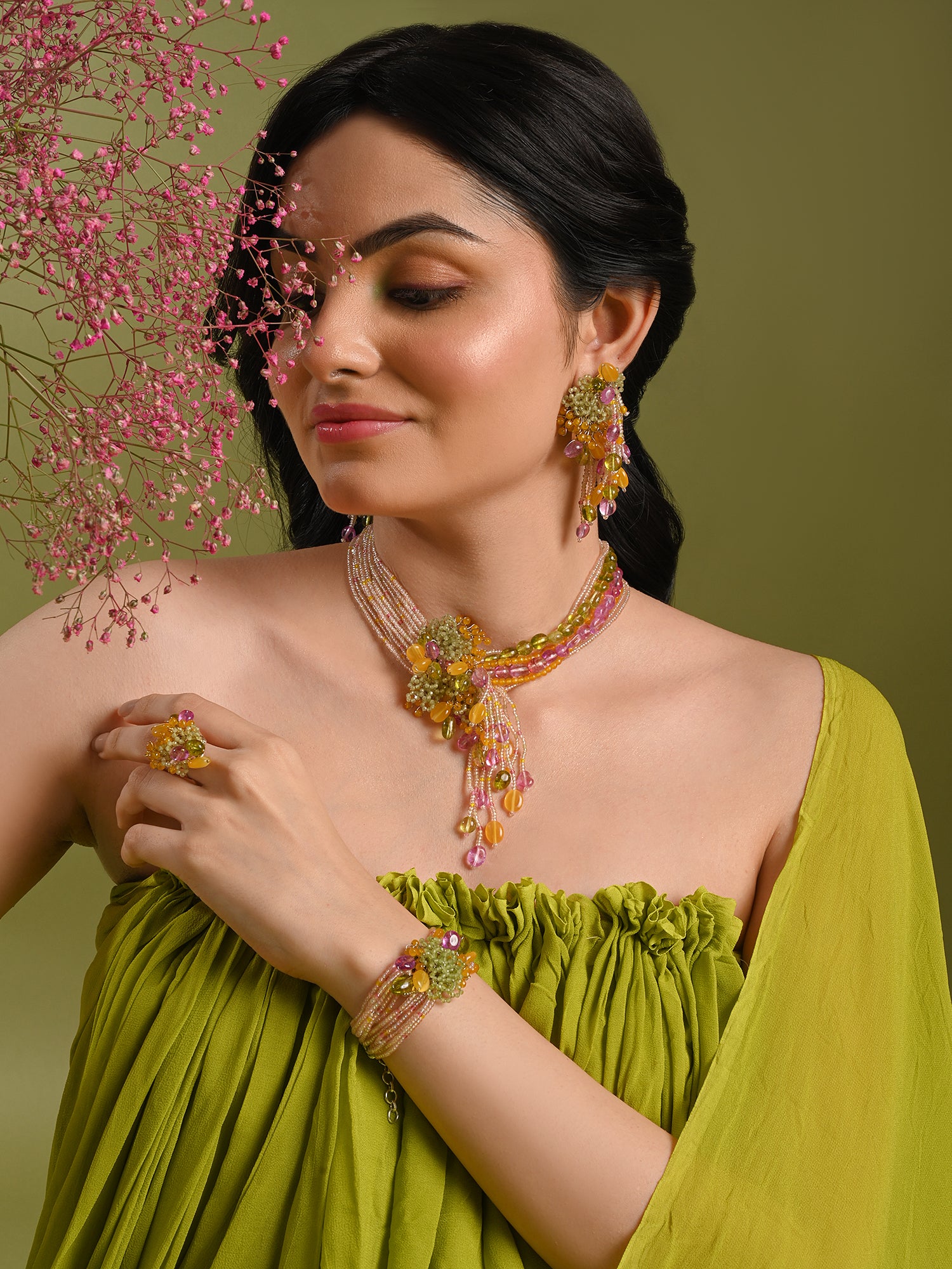 Colourful Stone Beaded Choker Set Of 4 For Women