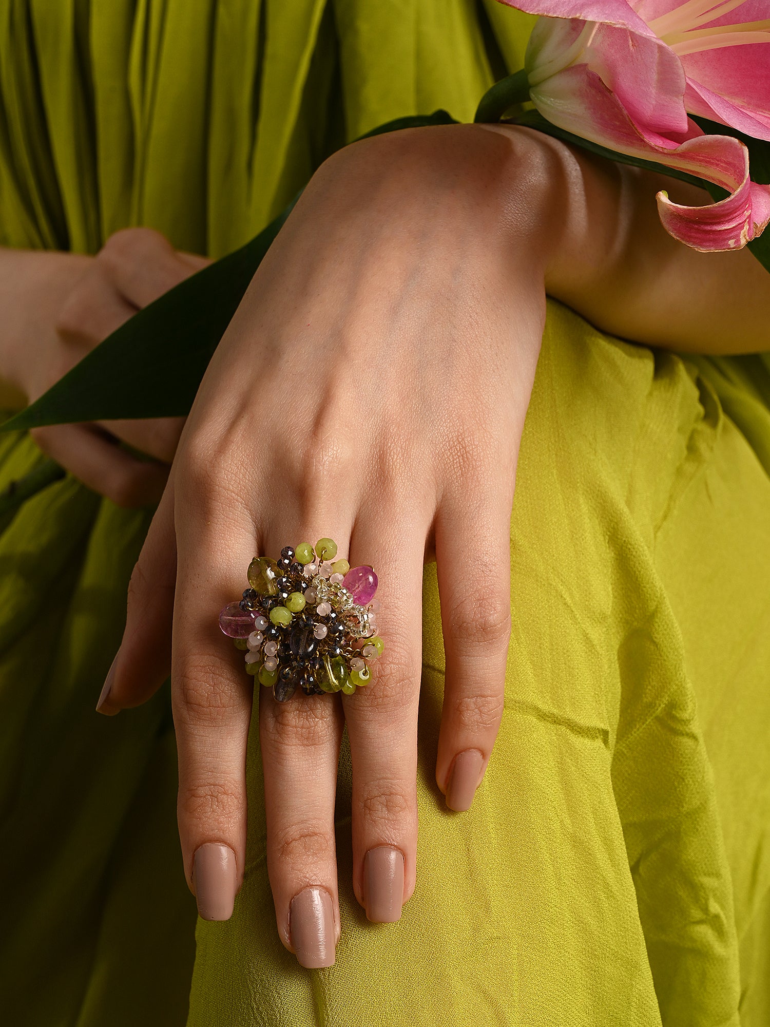 Colourful Stone Haldi Mehendi Wedding Adjustable Ring