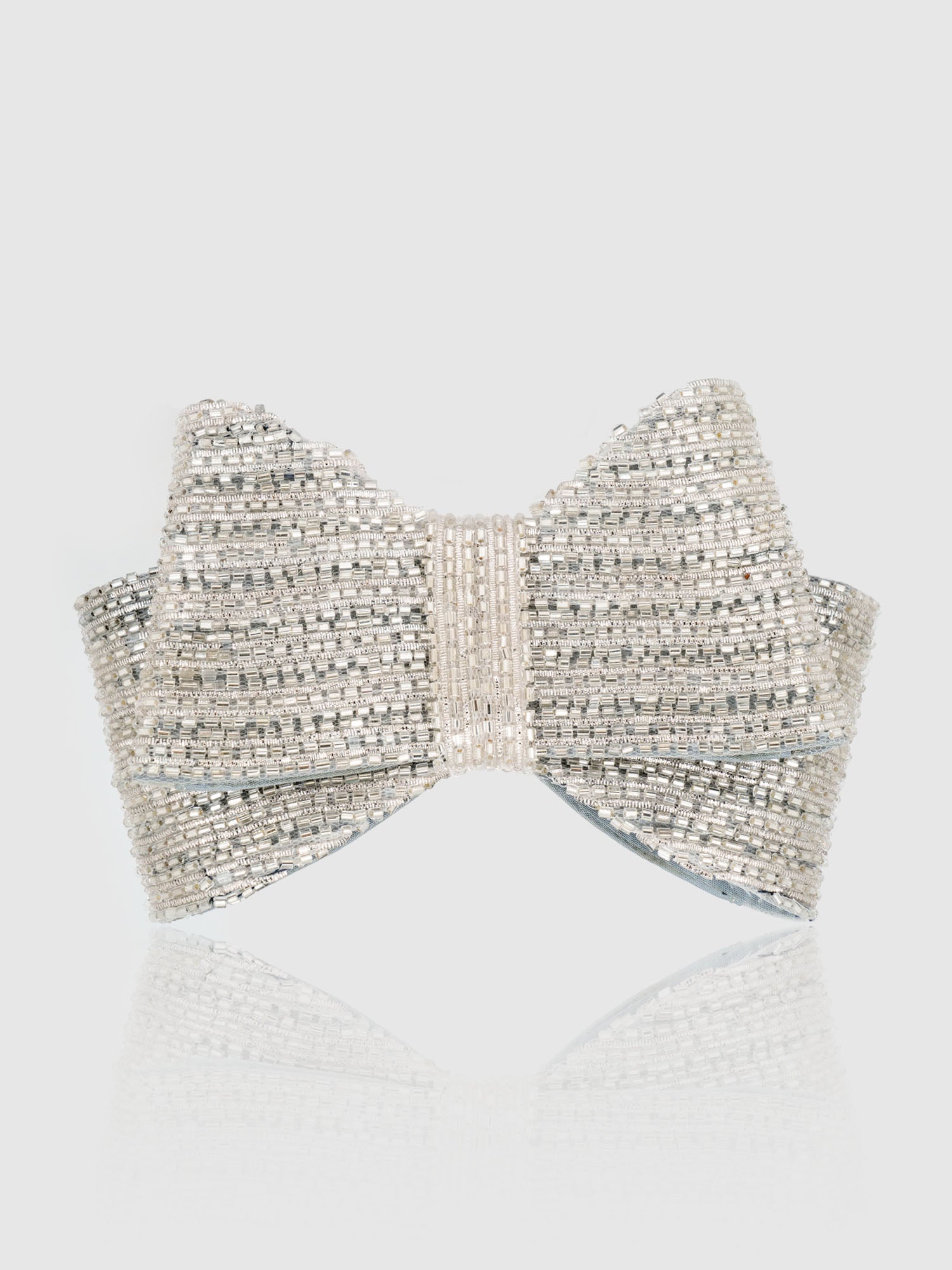 Introducing the Grandiose Hair Bow in stunning silver, a statement piece that exudes elegance and flair. Crafted with attention to detail, this bow features intricate silver embellishments that add a touch of glamour to any hairstyle. Perfect for formal events or adding a hint of opulence to your everyday look, the Grandiose Hair Bow promises to elevate your style with its bold yet refined charm. Make a grand entrance with the Grandiose Hair Bow and let your personality shine.