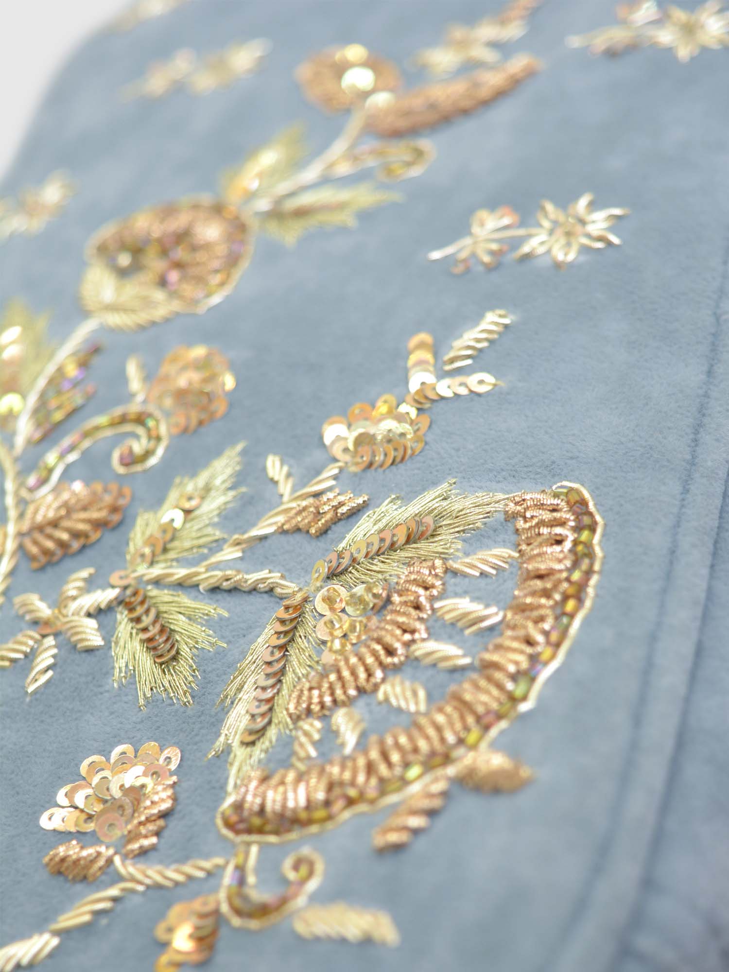 The JewelNest Organizer Bag handworked with premium Zardosi and sequence work on high quality velvet is the ultimate storage solution for your precious accessories. Featuring over five dedicated pouches, including two spacious compartments for larger items, and three flat pouches for optimal organization, this bag ensures your bangles, earrings, and rings are perfectly segregated and easy to access. Its sleek design and thoughtful layout make it an essential for travel and everyday use, keeping your jewelry safe, organized, and tangle-free.