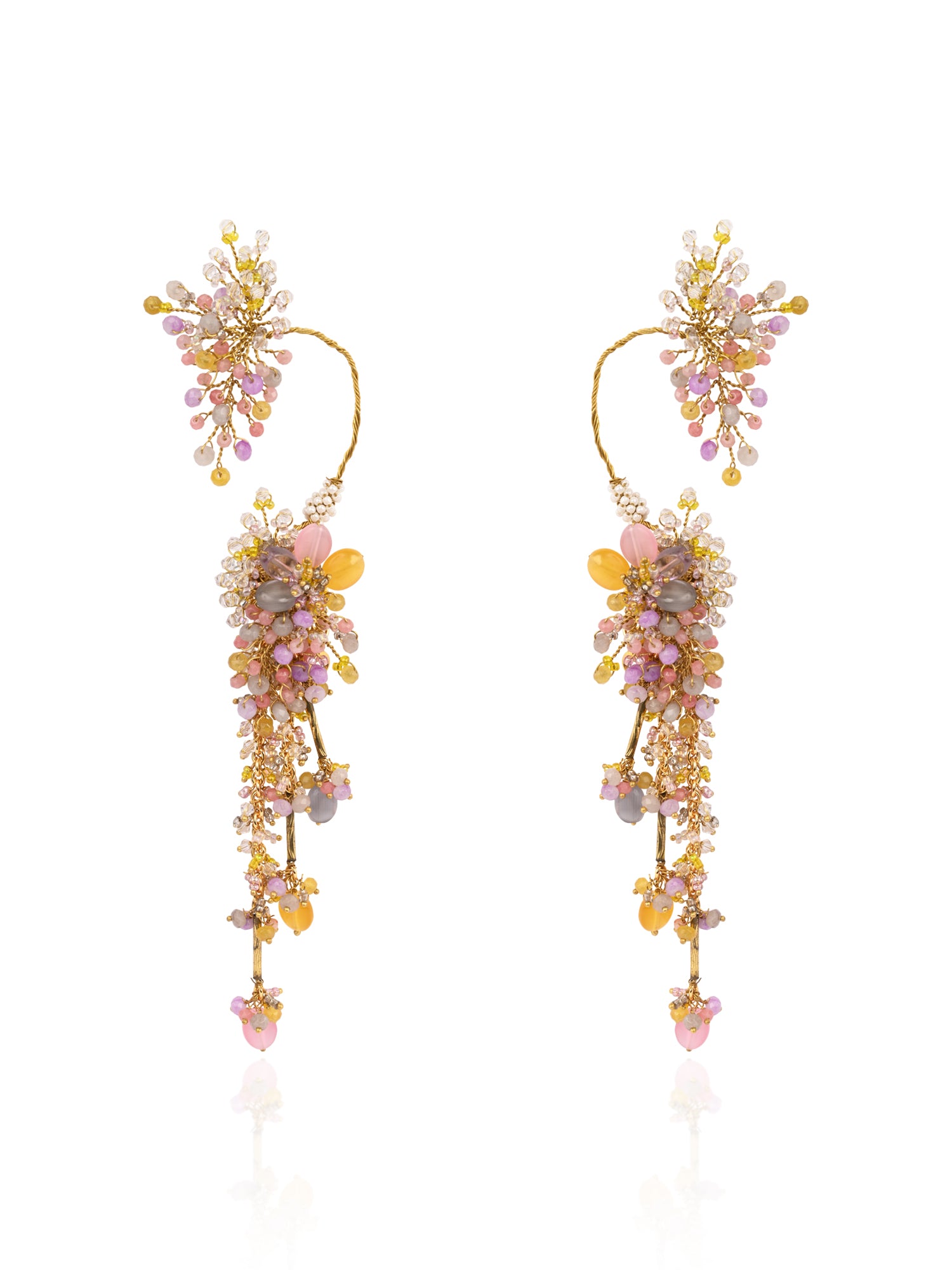 Handcrafted Three Layer Detachable Cuff Earrings Designed With Multicolour Stones