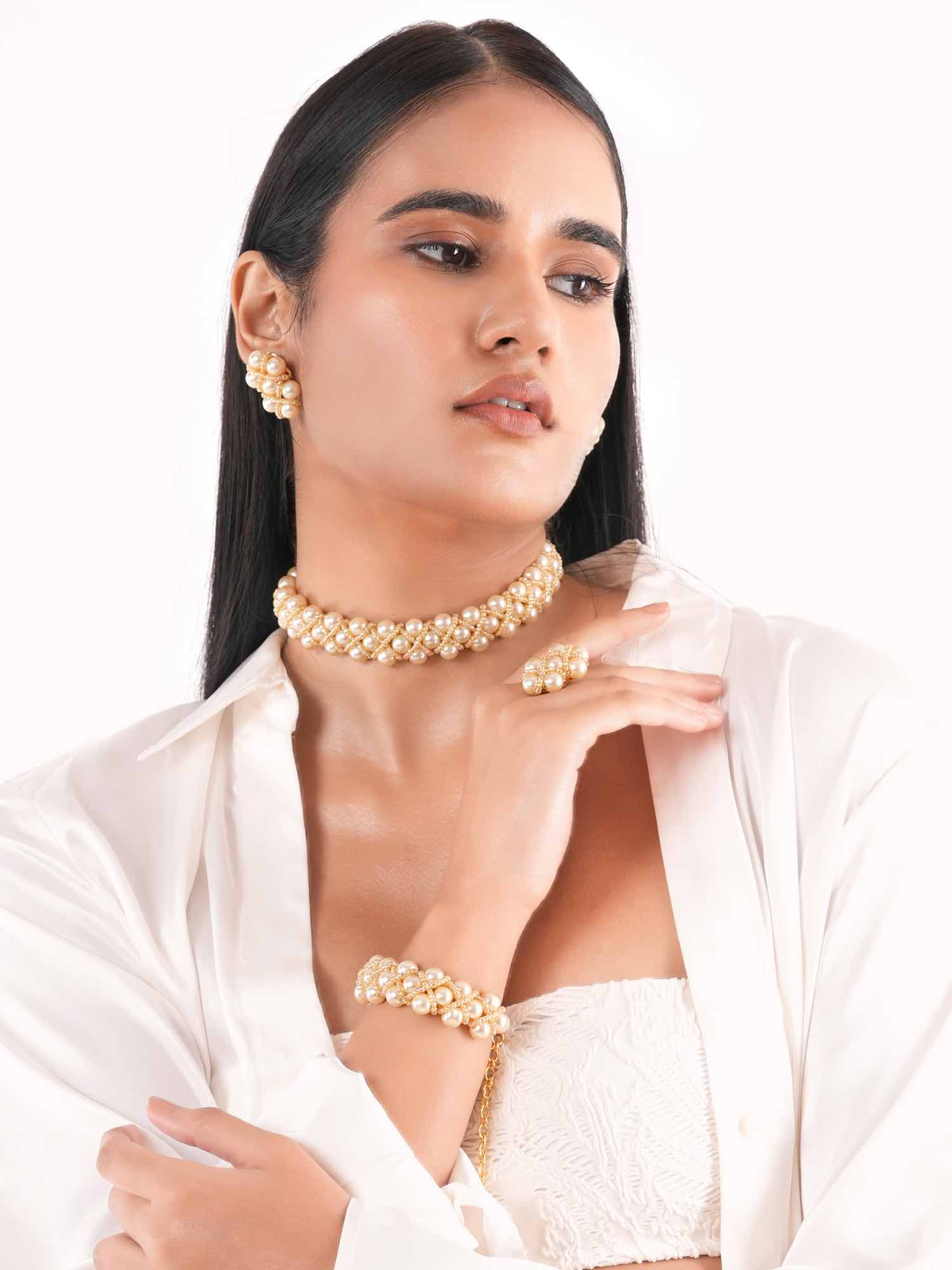 Helmi Pearl Choker Set Peach