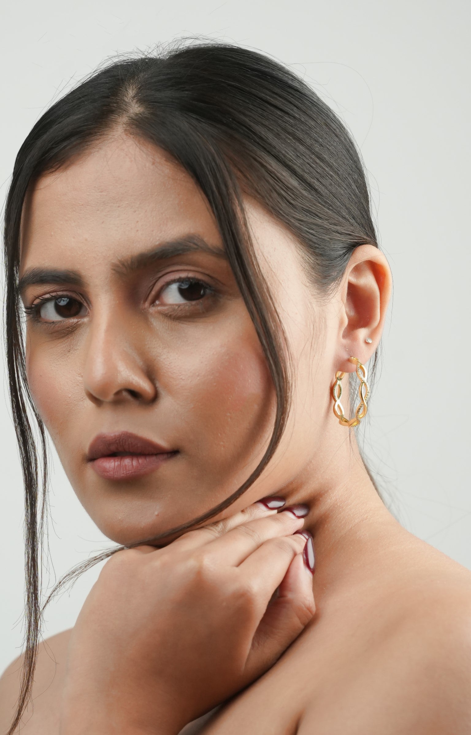 The Infinity Hoop Earrings feature a continuous loop design, symbolizing timeless beauty and boundless style. With their sleek, minimal design, these hoops bring a touch of sophistication and effortless grace to any look.