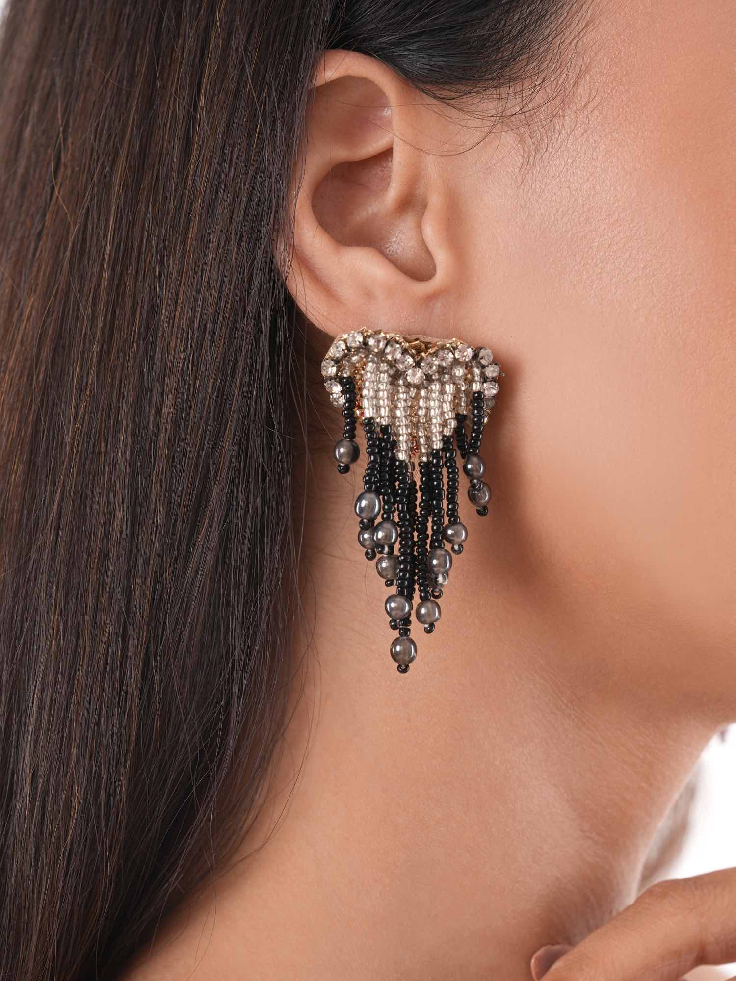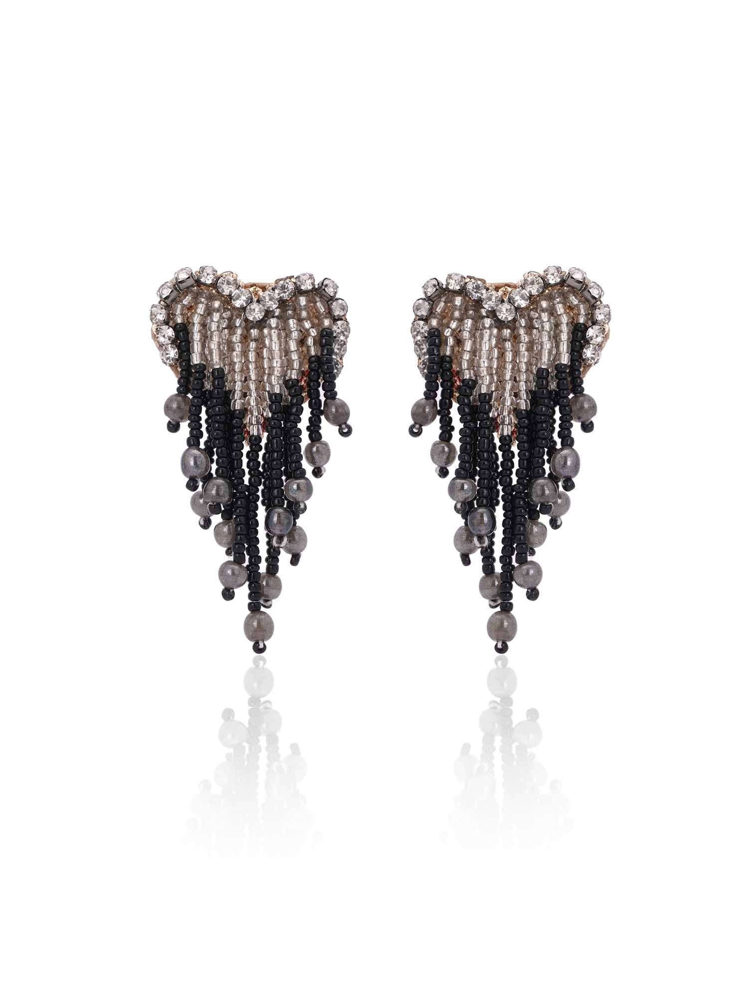 Discover the allure of our Lover Earrings, adorned with elegant black and silver beads, and sparkling diamonds crafted in a heart shape base. These earrings are the perfect embodiment of romance and sophistication, adding a touch of timeless charm to any outfit. Let your style speak of love and elegance with the Lover Earrings.