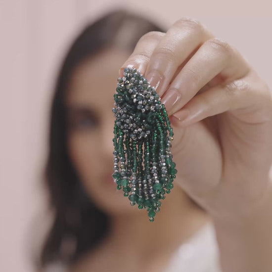 Elevate your style with our Marina Gleam Earrings. Featuring an exquisite combination of green and silver beads, these earrings offer a fresh and sophisticated look. Perfect for any occasion, the Marina Gleam Earrings add a touch of elegance and sparkle to your ensemble.