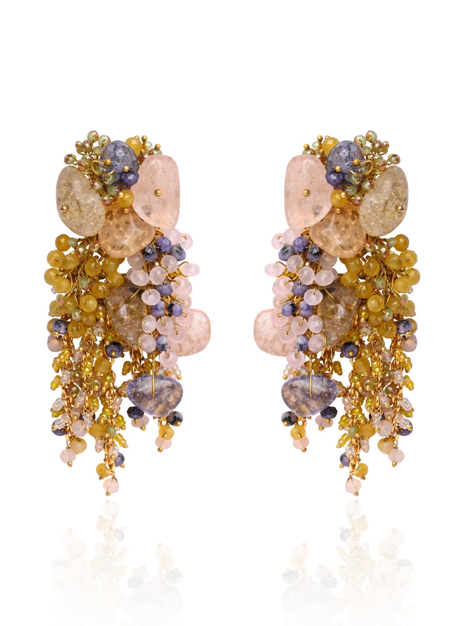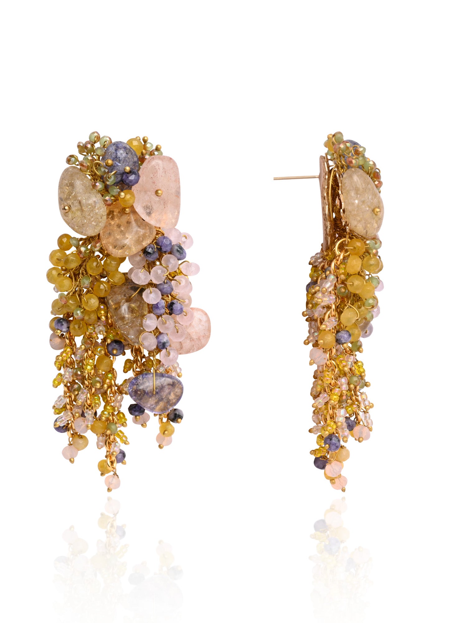 Colourful Precious Stone Gold Plated Long Chain Earrings