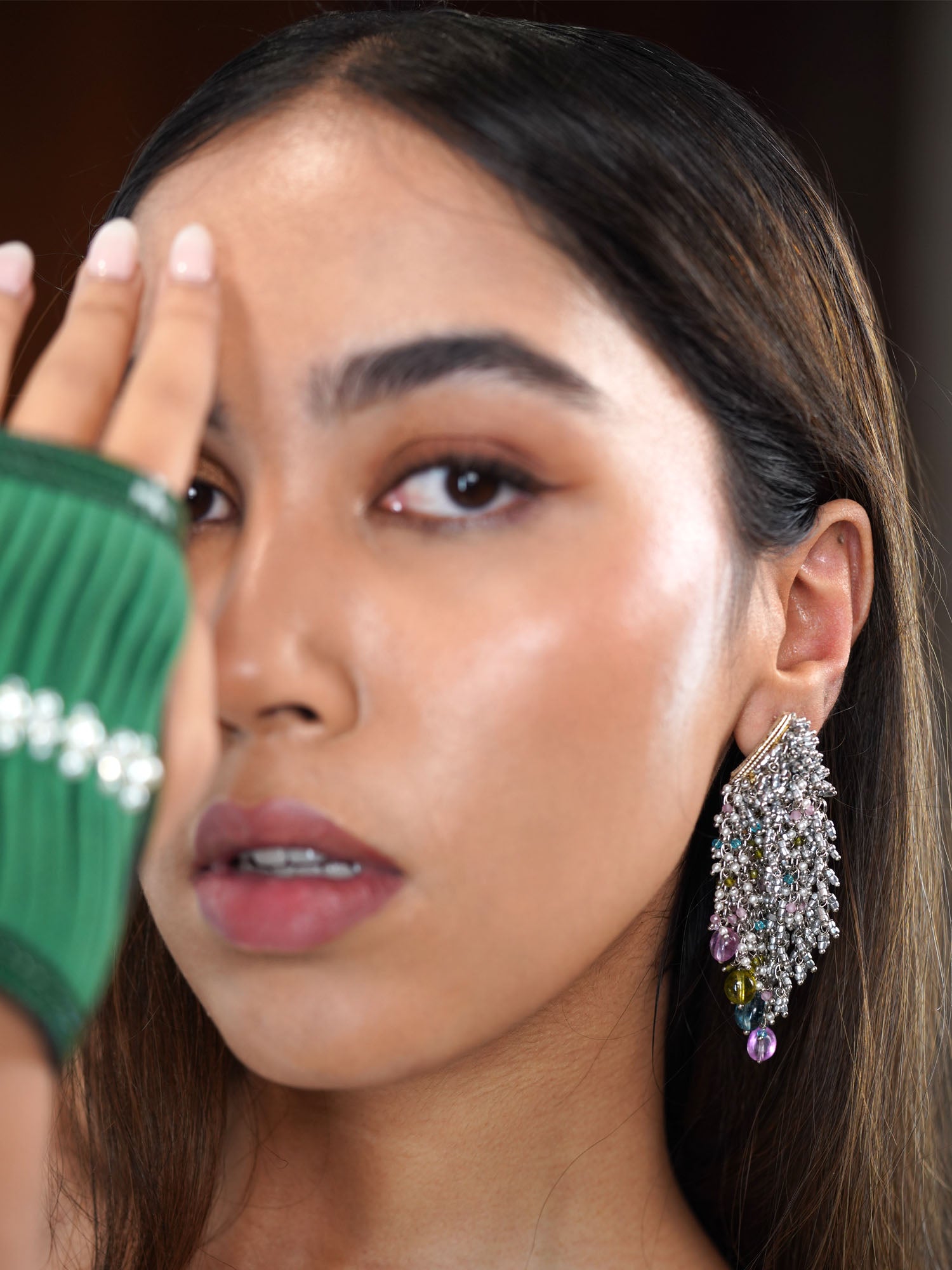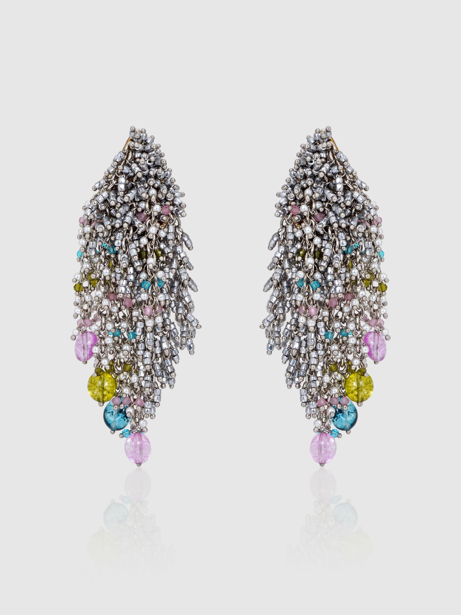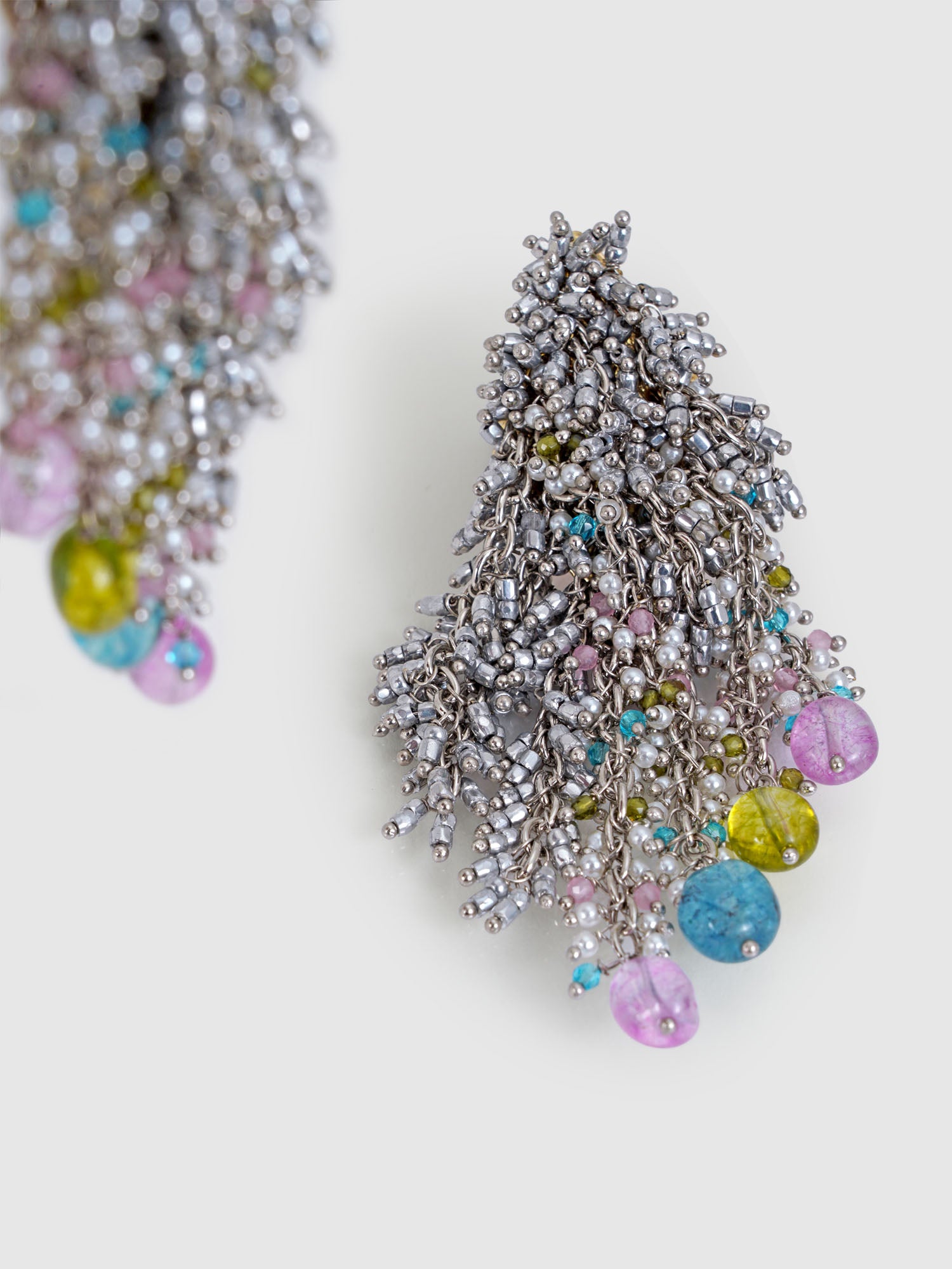 Introducing our Nebula Glitter Earrings, where celestial allure meets sparkling sophistication. These earrings boast a mesmerizing combination of silver and multicolored hues, evoking the ethereal beauty of distant nebulae. Each delicate strand shimmers with a kaleidoscope of colors, capturing the essence of cosmic wonder. The interplay of silver accents adds a touch of celestial glamour, while the multicolored hues create a captivating display of light and color. Perfect for adding a touch of celestial magic to any ensemble, these earrings are sure to dazzle and delight.