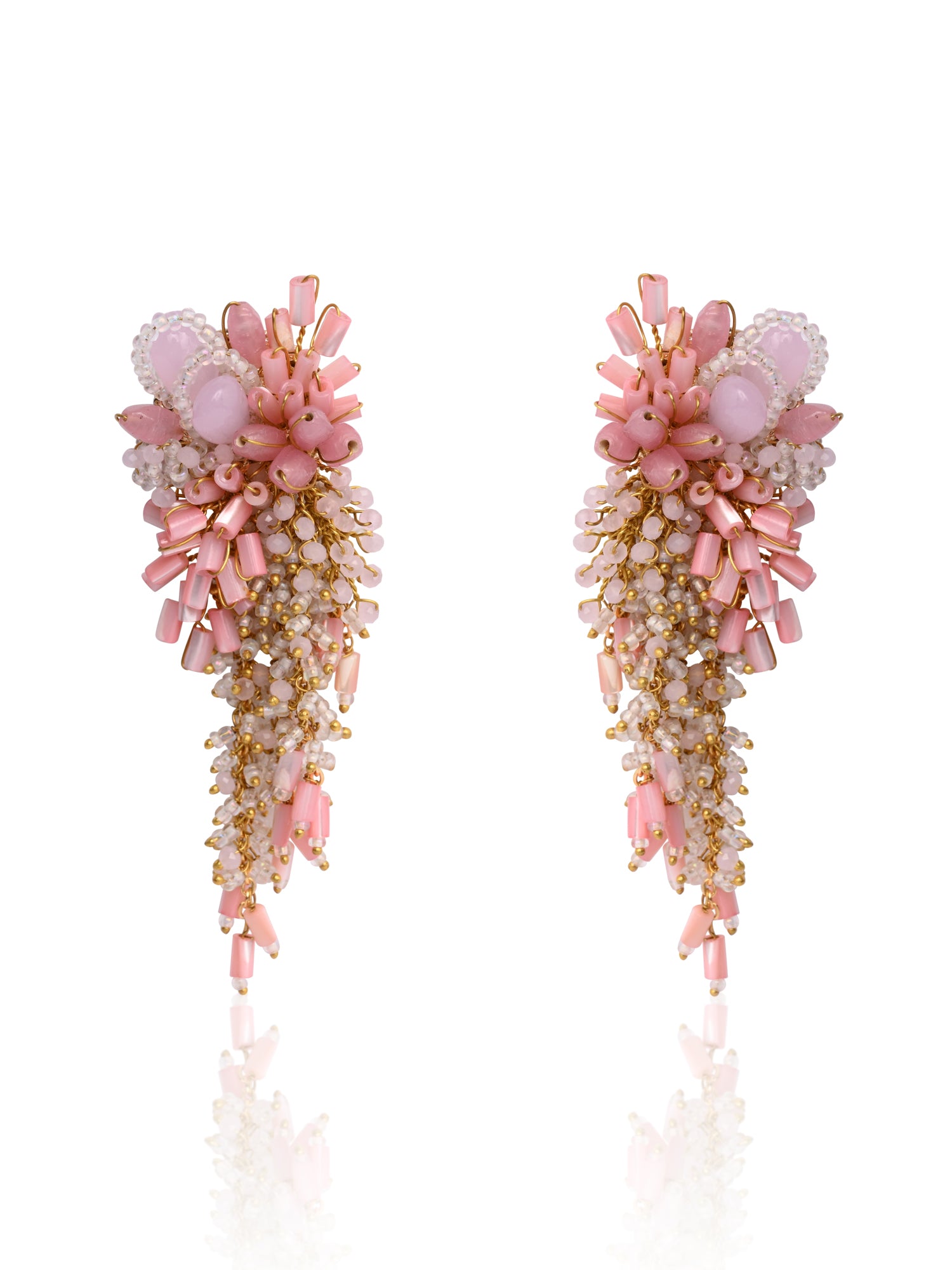 Baby Pink Shaded Gold Plated Chain Tassel Long Earrings
