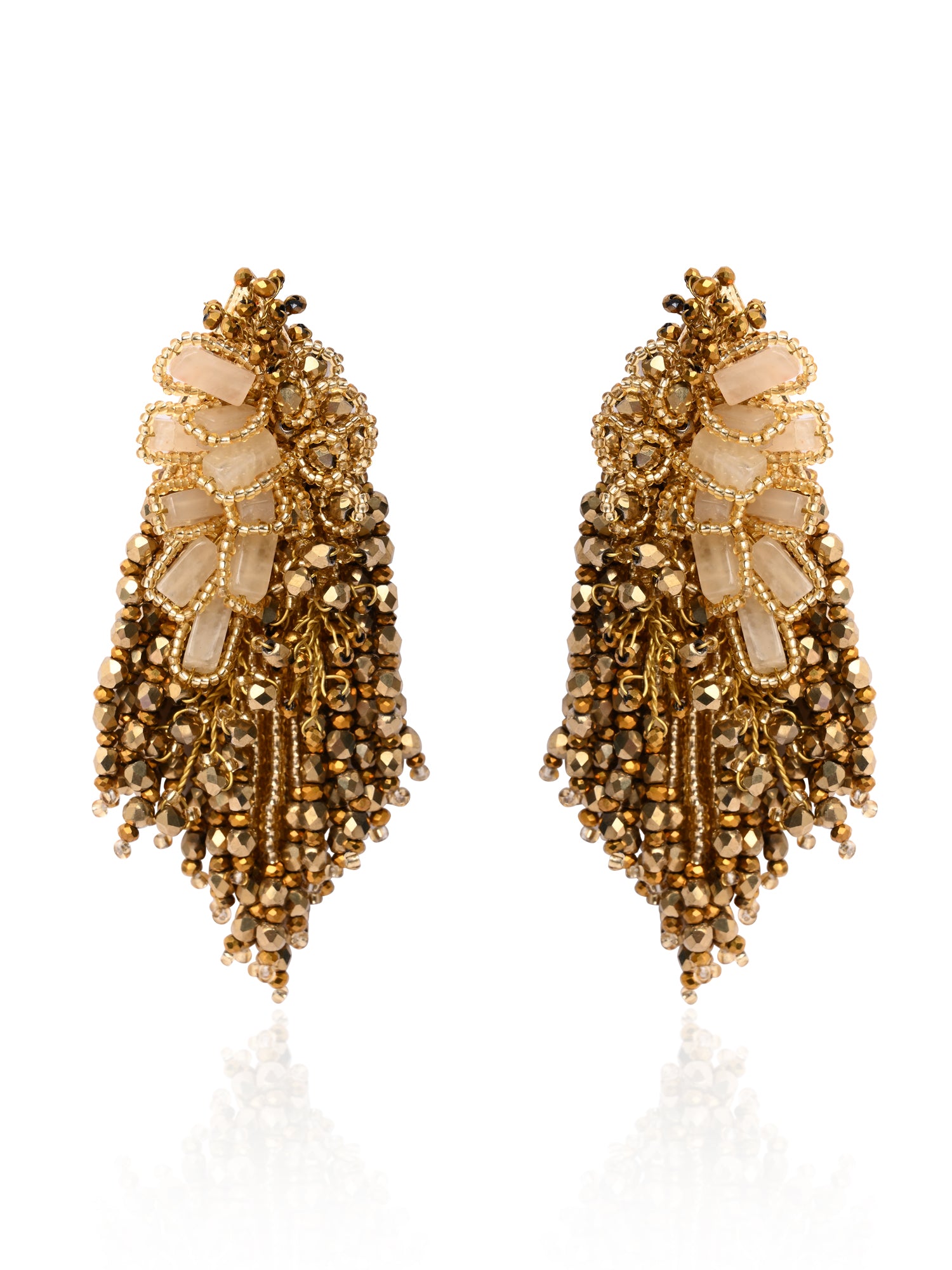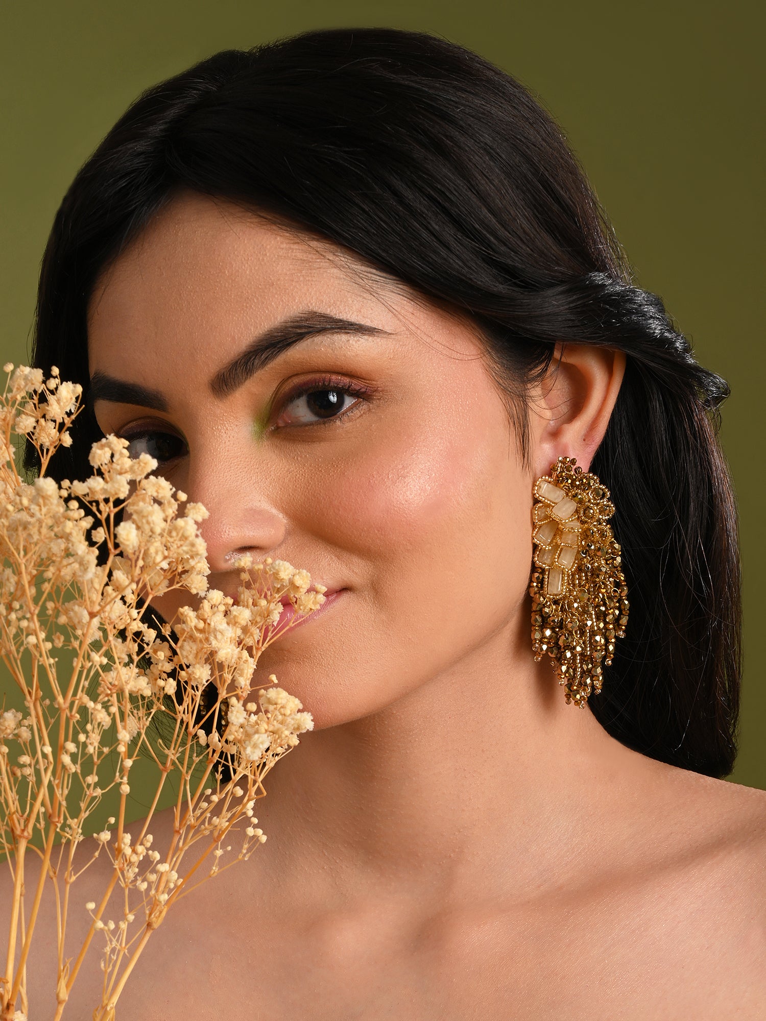 Named after the Greek muse of blooming joy, Thaleia is all about elegance in motion. With cascading florals and a soft shimmer, these long earrings are your go-to for modern festive looks with a timeless twist.