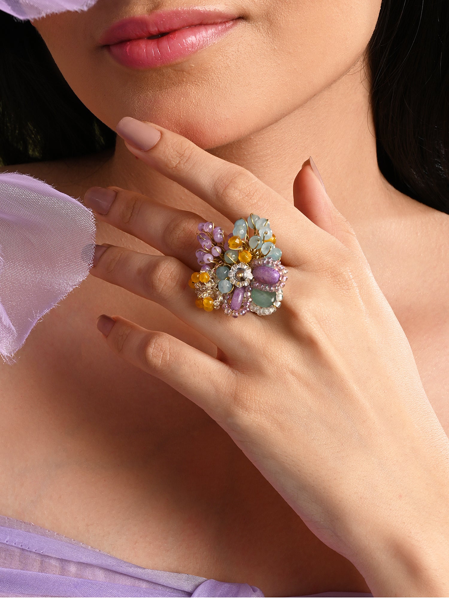 Adjustable Colourful Stone Finger Ring For Women